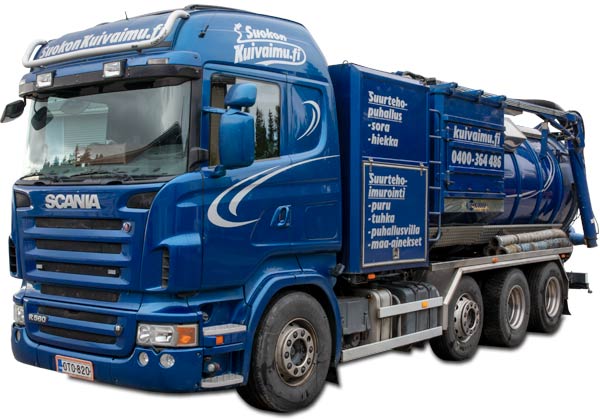 Suurtehoimurointi soveltuu kaiken kuivan ja märän materiaalin poistoon: materiaali imuroidaan 3″-6″-letkulla auton säiliöön, jonka jälkeen se siirretään asiakkaan osoittamaan paikkaan tai kuljetetaan asianmukaiseen loppusijoitukseen. Kuorman tyhjennys suoritetaan kippaamalla.