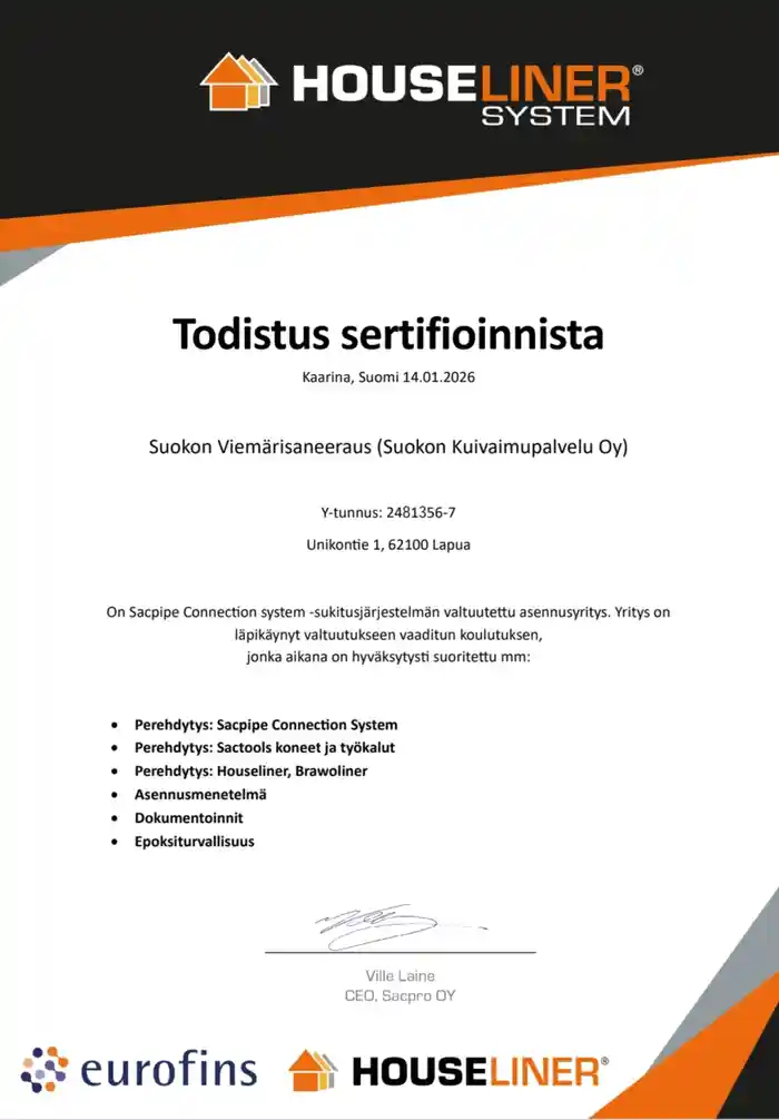 Jos sinulla on viemäriongelmia, kuten toistuvia tukoksia, kitkaa veden virtauksessa, vuotoja tai haluat ennaltaehkäistä putkirikkoja, harkitse viemärin sukitusta. Anna meidän arvioida tilanteesi ja tarjota parhaan ratkaisun juuri sinun tarpeisiisi. Tarjoamme työllemme aina 10 vuoden asennustakuun. Ota rohkeasti yhteyttä!